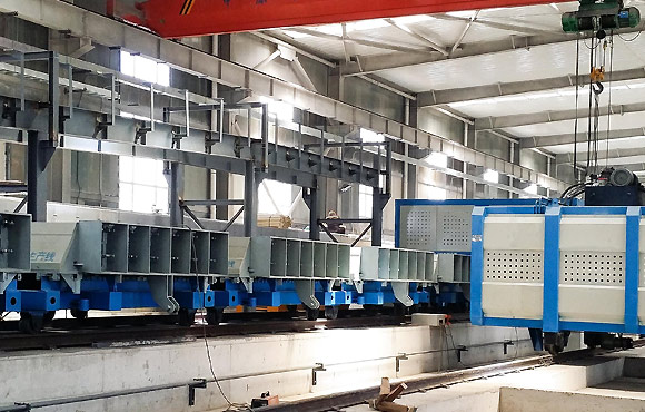 成組立模PC生產線采用成組立模成型技術,模塊化控制,實現新型PC大墻板的工業化生產,通過“大立模+T型架”的子母模技術極大的提高生產效率,解決了現階段PC平模生產線只能生產平面構件的弊端。